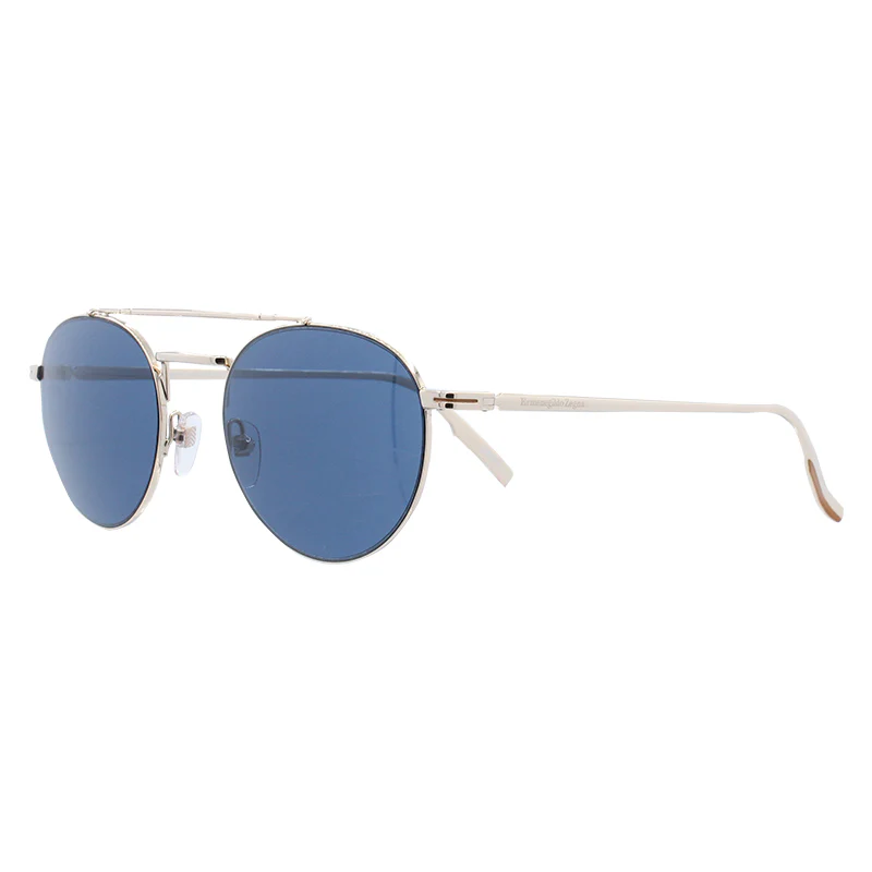 Blue lens men's sunglasses from Ermenegildo Zegna with gold tone frame.